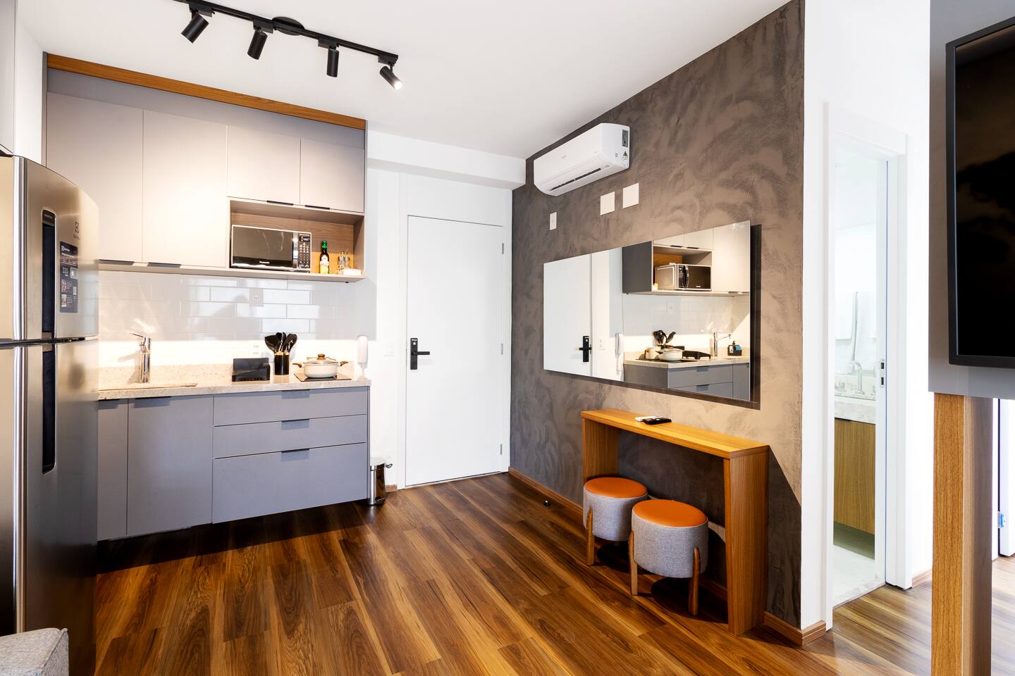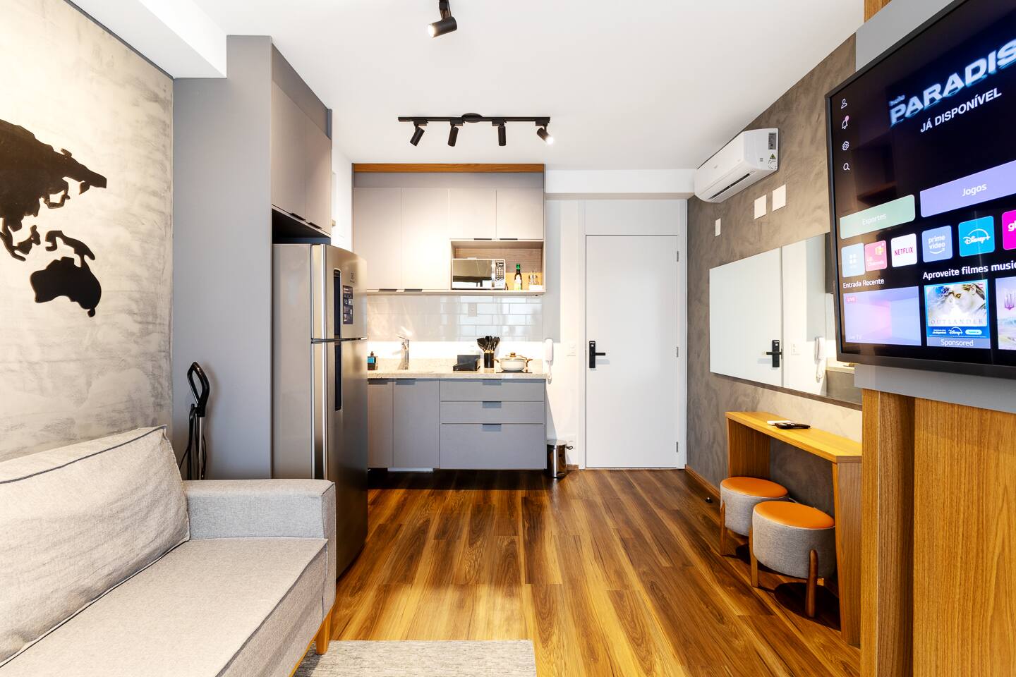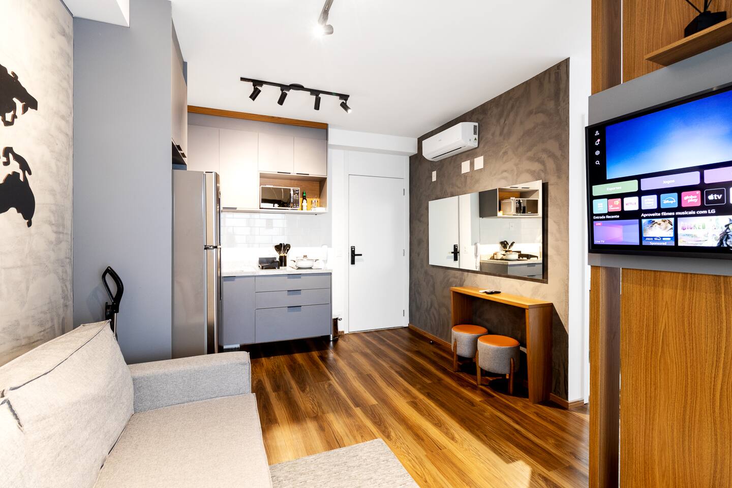 Every inch of this 45m² residence at Maison Cyrela has been optimized for the modern traveler who refuses to compromise on comfort. Whether you are colleagues on a business trip, couples or friends exploring São Paulo, or visiting for medical reasons, our two-bedroom layout ensures everyone has a private sanctuary—no sofa beds here. The master suite features a luxurious Queen bed and a private Smart TV, while the second bedroom offers a comfortable double bed; both are outfitted with expansive, floor-to-ceiling closets, perfect for those on longer stays who need to truly unpack and feel at home. The living area is a masterclass in "luxury accessible" design, flowing seamlessly into a private balcony. Here, you can enjoy a coffee in the armchairs while taking in the stunning view of the Allianz Parque. For those visiting nearby clinics or working remotely, the apartment provides a serene environment with high-speed Wi-Fi and a fully equipped kitchen—stocked with BSR essentials—allowing for healthy home-cooked meals at the proper dining table. From the high-end lobby to the state-of-the-art gym and pool, every detail reflects the professional excellence of the Becker Standard, ensuring a "zero-friction" stay from check-in to check-out. PLEASE READ: IMPORTANT INFORMATION ABOUT THE BUILDING! At Becker Studios Rentals, honesty is our cornerstone. We want you to have all the information so you can decide if this is the perfect stay for you. The building is brand new (it officially opened in July 2025) and it's fantastic! However, this means that many apartments are still being finished and residents are moving in. Therefore, please consider the following before booking: DAYTIME NOISE: From Monday to Friday, during business hours (approximately 8:00 AM to 5:00 PM), it is very likely that you will hear construction-related noise. If you plan to be out exploring the city during the day, this should not affect you. PROTECTED COMMON AREAS: To protect the new facilities during the move-in period, you will notice that the elevators and some hallway floors are covered with protective materials. We are offering a special introductory rate to account for these details. This is a unique opportunity to stay in a premium location for an incredible price while the building fully comes to life! If you're the type of traveler who spends the day exploring and is looking for a well-located, comfortable base to rest at night, then this studio is the perfect fit for you! We look forward to welcoming you with the BSR standard of hospitality!