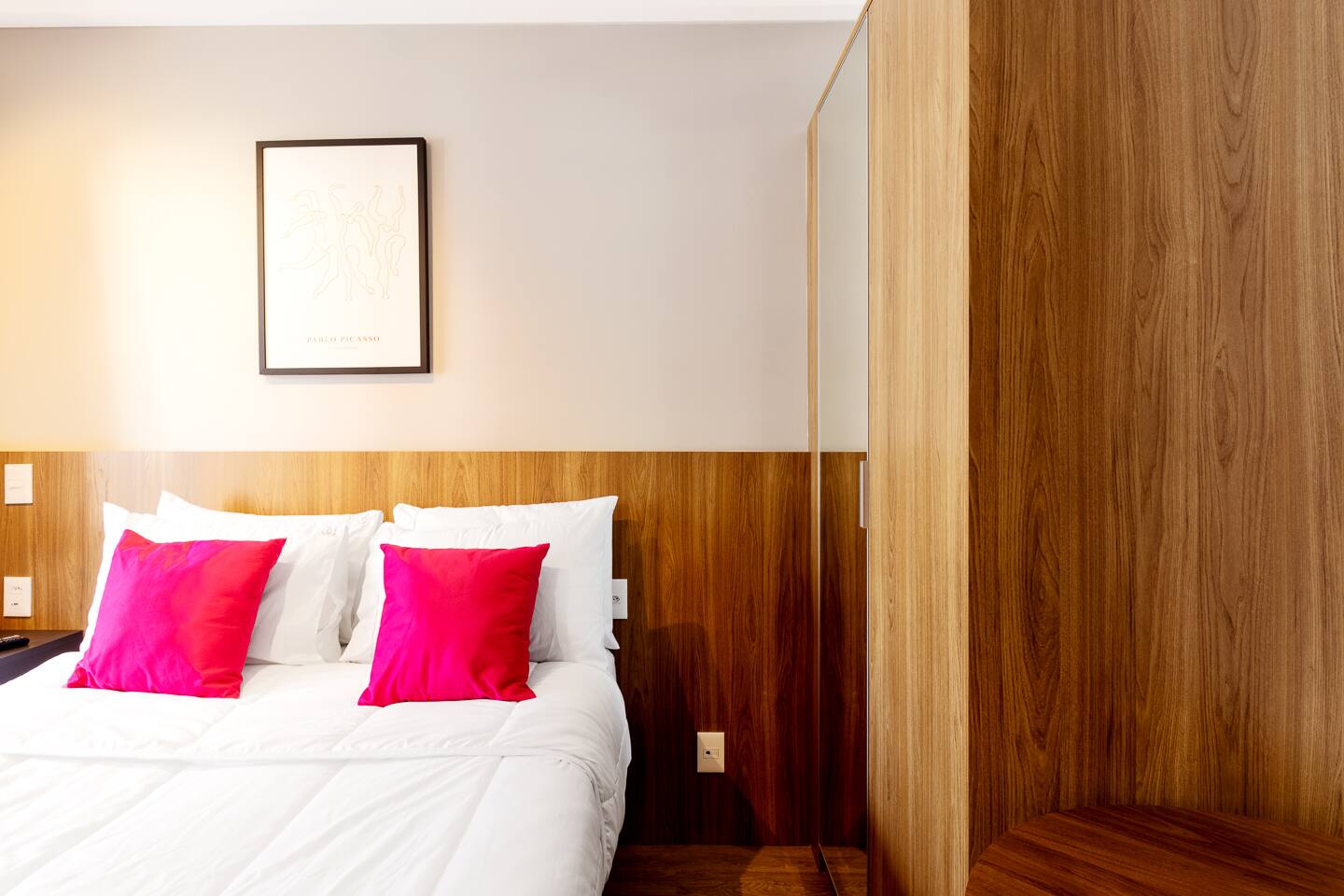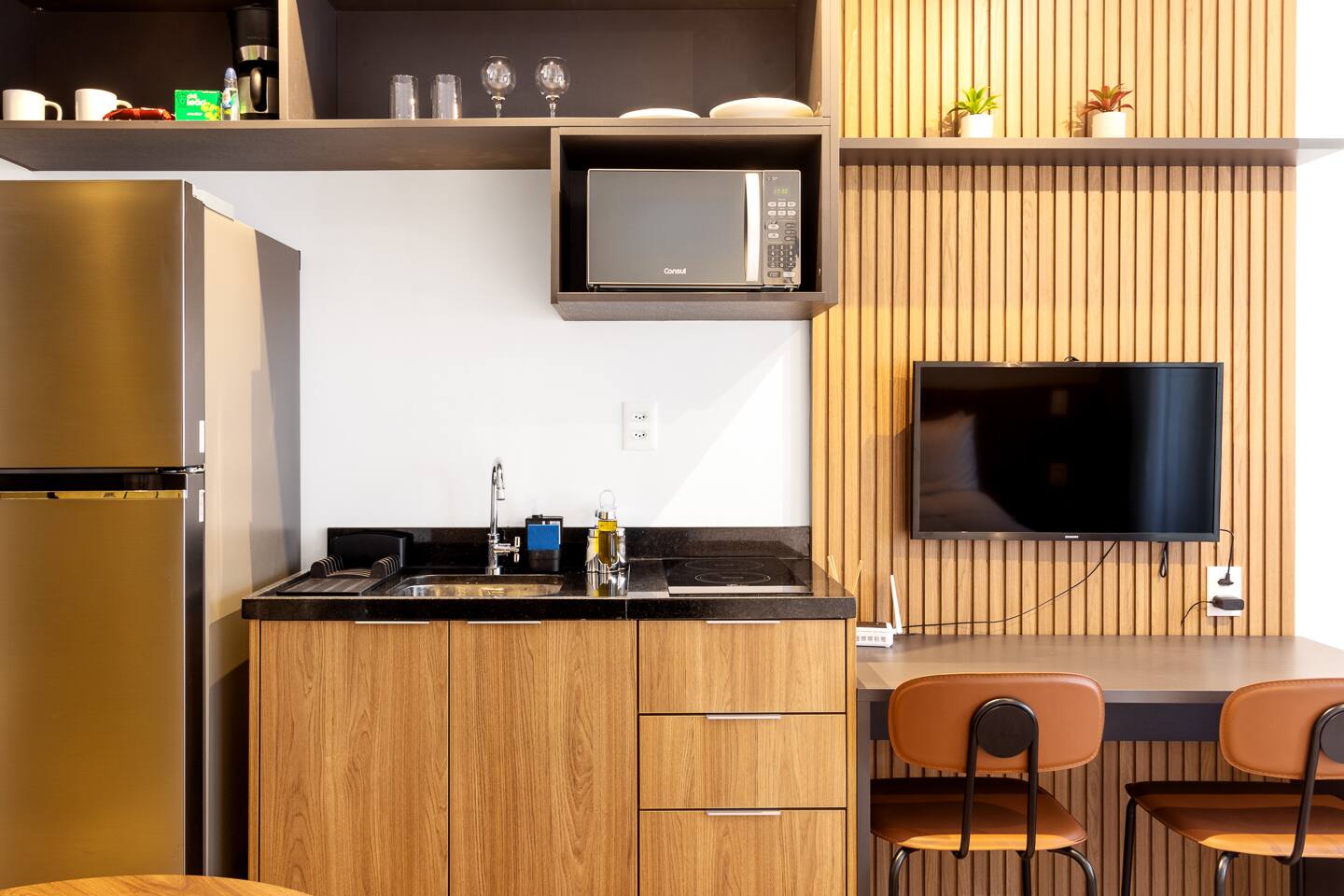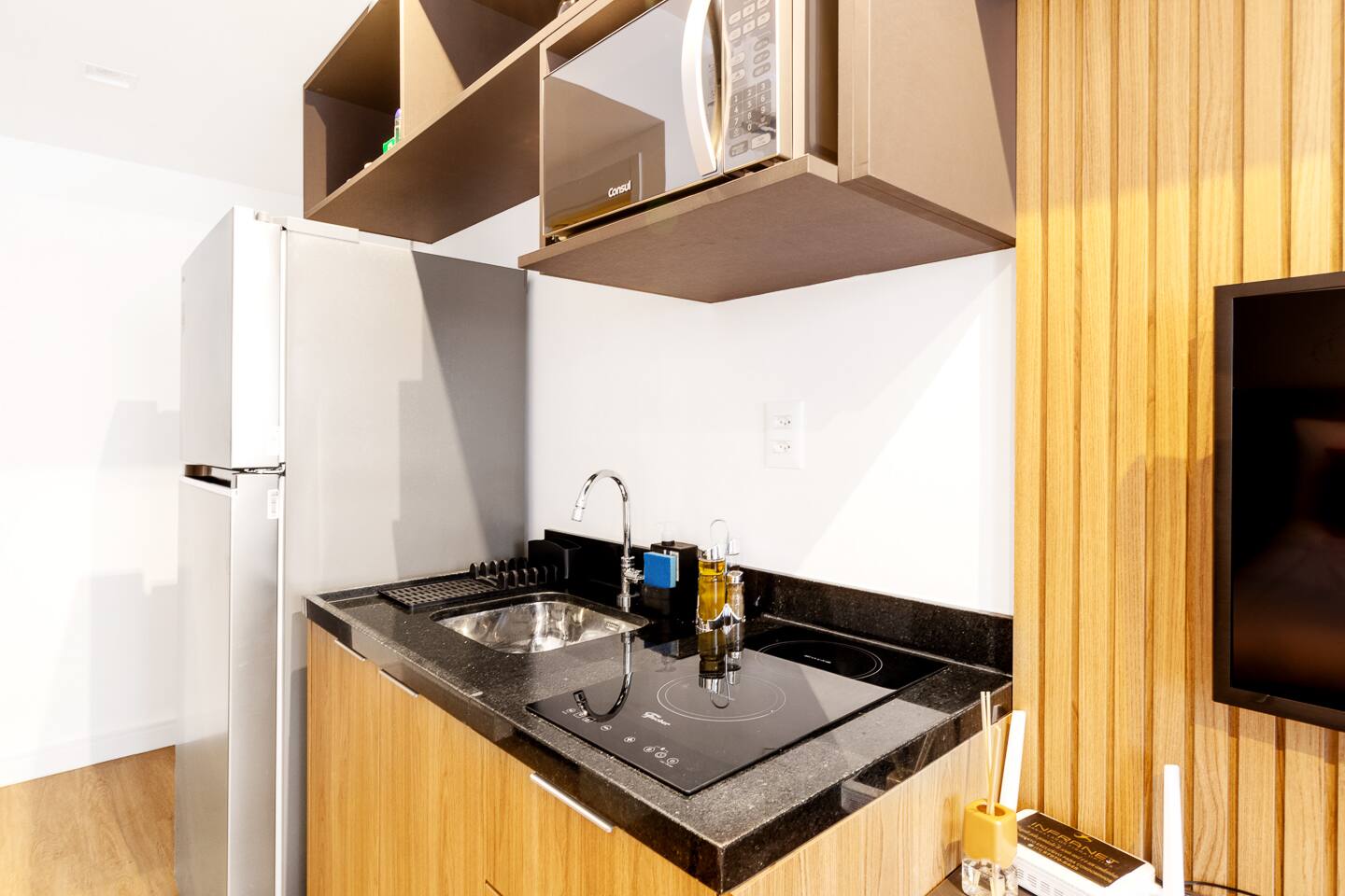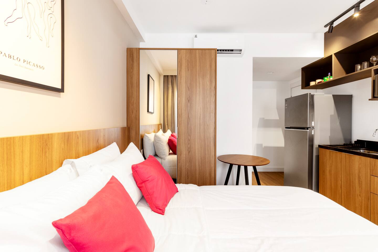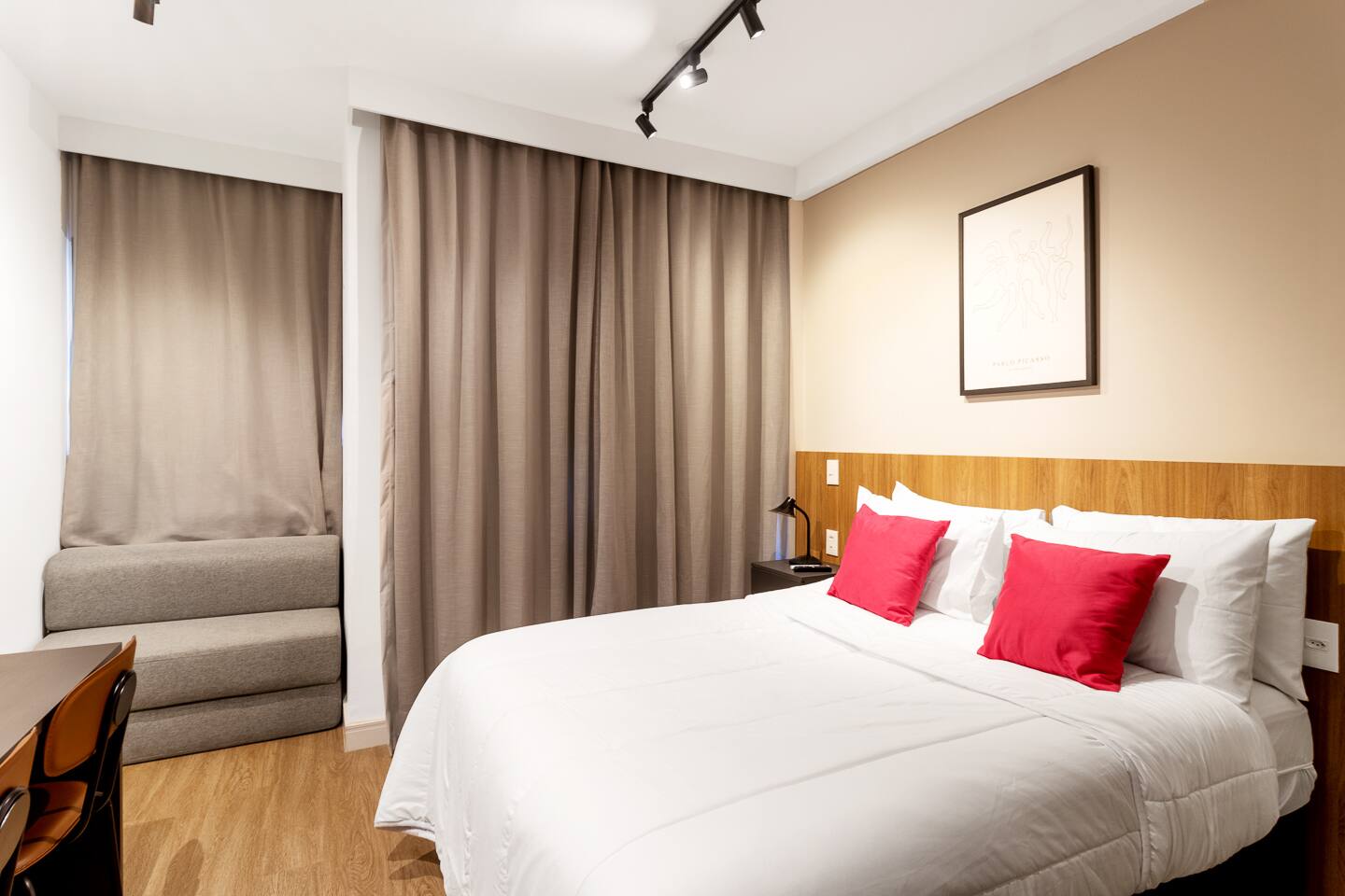 This 27m² unit is a model of vertical efficiency. High above the city on the 17th floor, it offers a quiet retreat from the bustling streets below. The Queen-size bed offers a restful sanctuary, while the single sofa bed is perfect for a child or guest. Long-stay guests will love the "On" building's ecosystem: a 24h mini-market for last-minute groceries, a dedicated pet place, and a professional laundry room. The kitchen is fully functional for home-cooked meals, and the balcony provides a safe, fresh-air escape. We provide professional cleaning products at your disposal, ensuring your home remains pristine throughout your stay in Vila Olímpia.