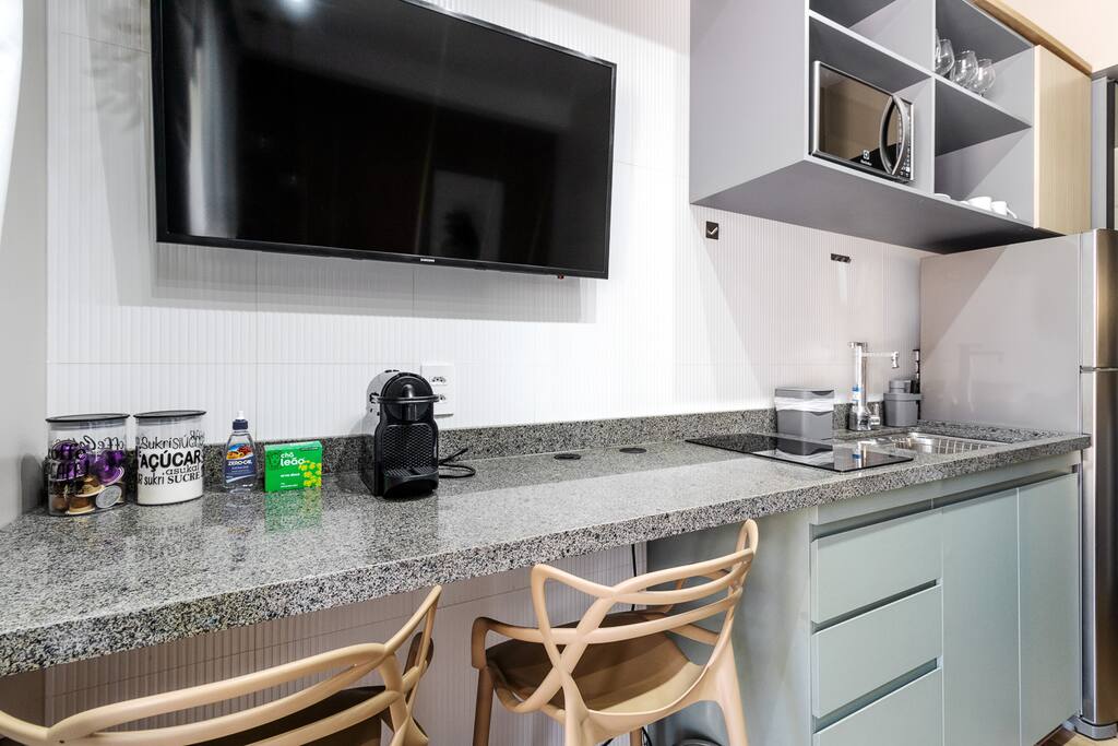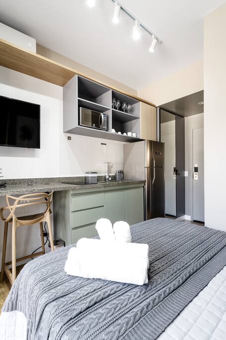 Maximize your productivity in São Paulo at this executive studio. Located in a prestigious building, this property is specifically curated for the modern student or professional. We offer a seamless, high-tech environment featuring ultra-fast 500mbps fiber Wi-Fi and a quiet, focused atmosphere. Between meetings, step out onto the balcony to clear your head with views of the city. With 24/7 security and a prime location near the financial hubs, your business trip has never been this efficient.
