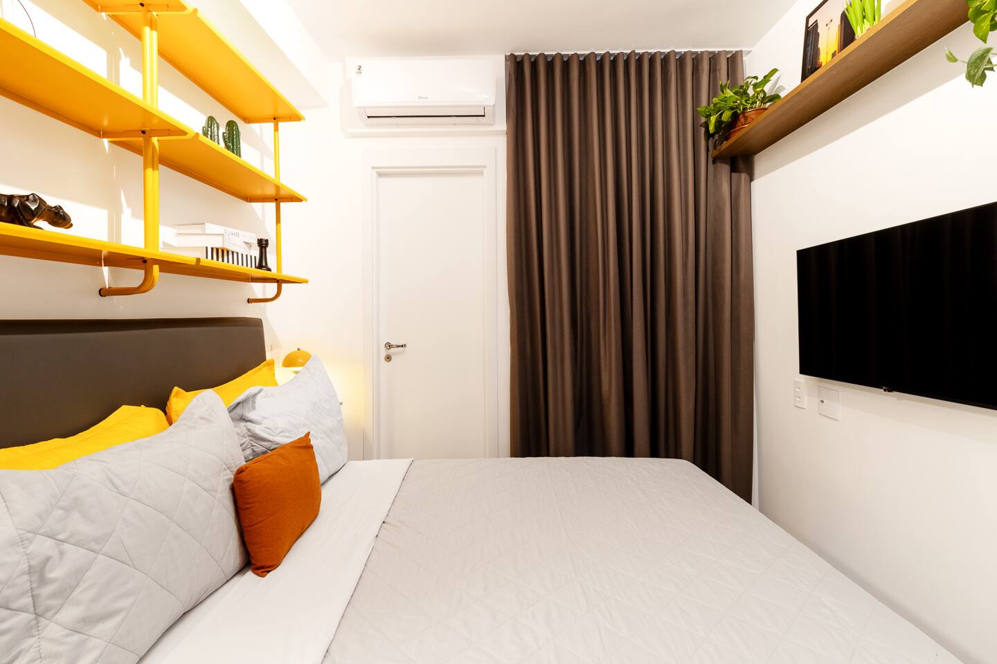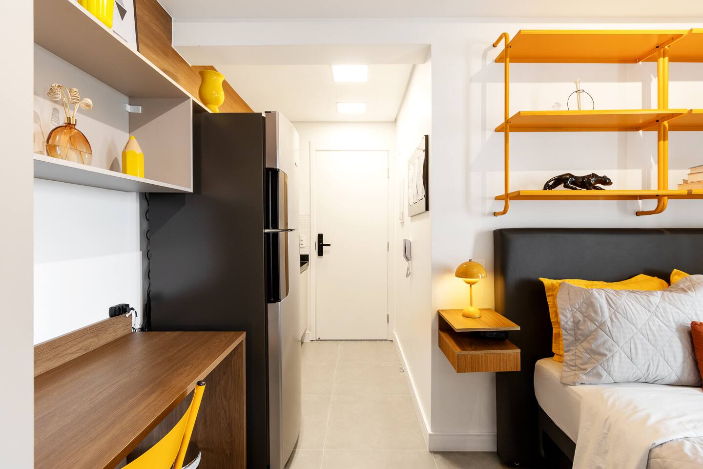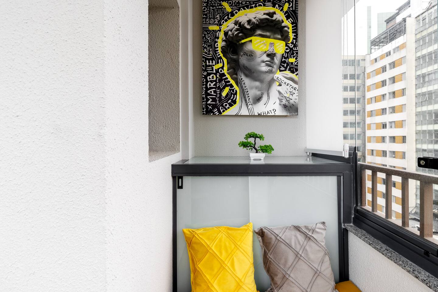 Welcome to your premium São Paulo experience. This brand-new, 23m² designer studio blends the vibrant energy of Rua Augusta with the high-end comfort of Becker Studios Rentals. Featuring a unique yellow-themed decor and a stunning glass-enclosed balcony, this space is perfect for solo travelers, couples, or small groups of three. Enjoy the best views of the city in a space that is as quiet as it is central, thanks to our specialized acoustic treatment. Start your day with a Nespresso and a view!