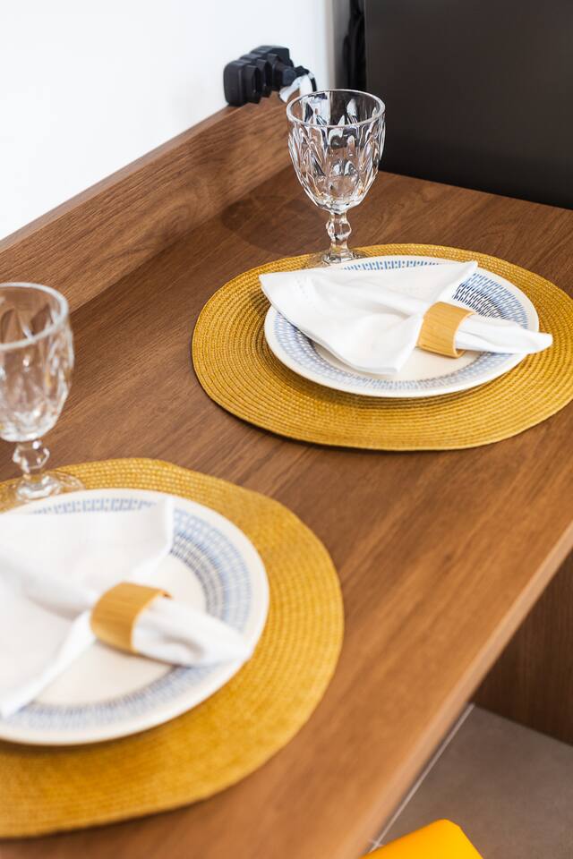 Experience smart urban living. The unit features a plush double bed, a pull-out mattress for an extra guest, and a beautiful dining area facing the balcony. The kitchen is fully equipped for your culinary needs, and the entire studio is furnished with brand-new, high-quality pieces. It’s the perfect mix of style and functionality. Plus, enjoy 500mbps Wi-Fi and 24/7 building security.