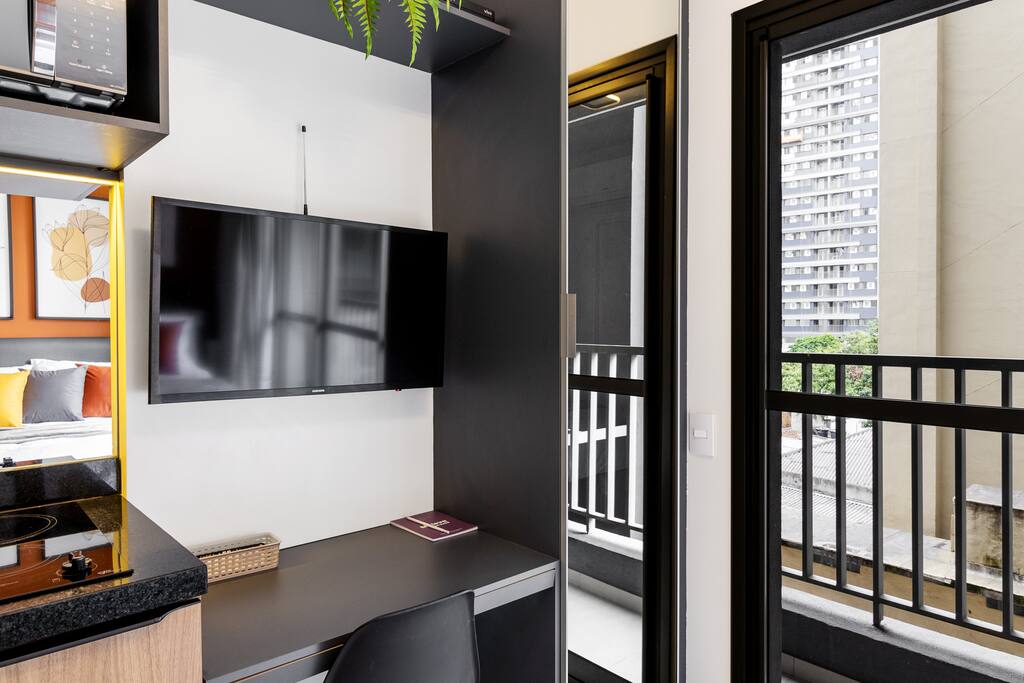 The Perfect Balance: Work & Play at Consolação Tailored for the dynamic couple combining business with leisure, this studio is the ultimate "bleisure" retreat. It offers the ideal intersection of a functional remote office with high-speed Wi-Fi and a stylish romantic getaway. Located in the premium VN Consolação building, just steps from the Metro and the vibrant life of Paulista Avenue, it serves as your compact, private headquarters in São Paulo. Experience efficiency and comfort in one place.