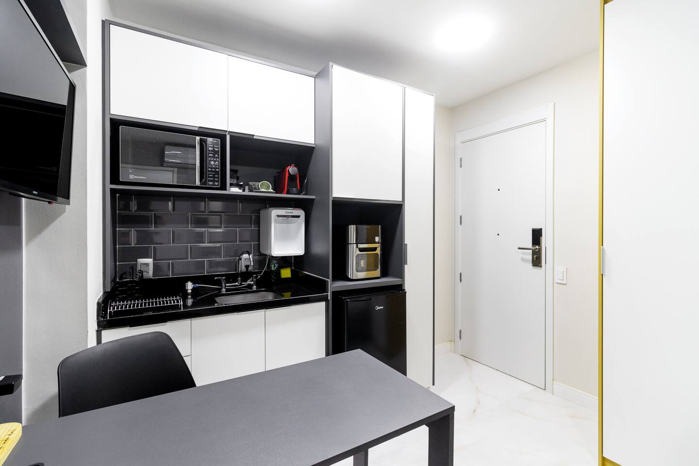 As a BSR guest at Athos Paraíso, your experience extends well beyond your front door. You have full access to the building’s premium amenities: Professional Laundry: Keep your wardrobe fresh during long stays with access to the building’s modern, professional-grade laundry facility (pay-per-use). The Executive Lobby: The building features a sophisticated, designer-decorated lobby. With plush sofas, ergonomic chairs, and a serene atmosphere, it serves as an excellent coworking space or a stylish spot for casual business meet-ups. 24/7 Security: Benefit from a state-of-the-art security system and a 24-hour concierge desk, ensuring a safe and smooth arrival at any time of day or night.