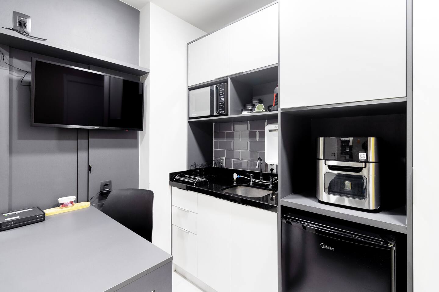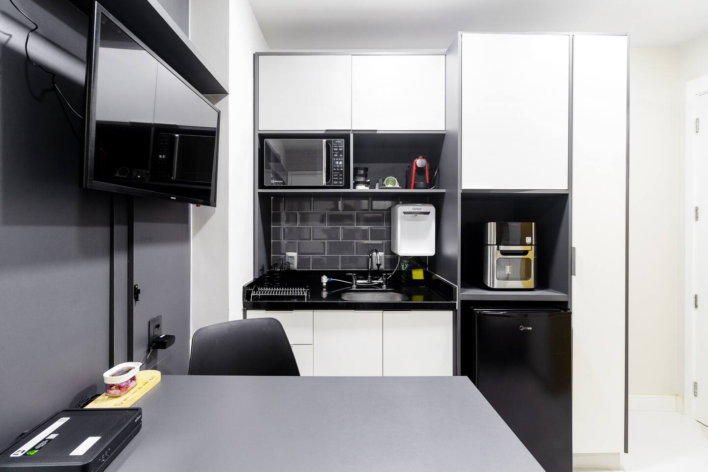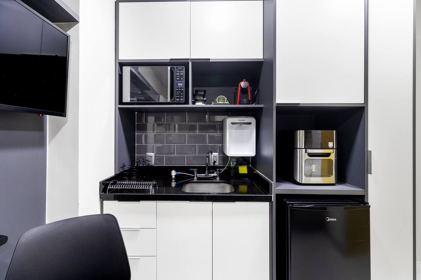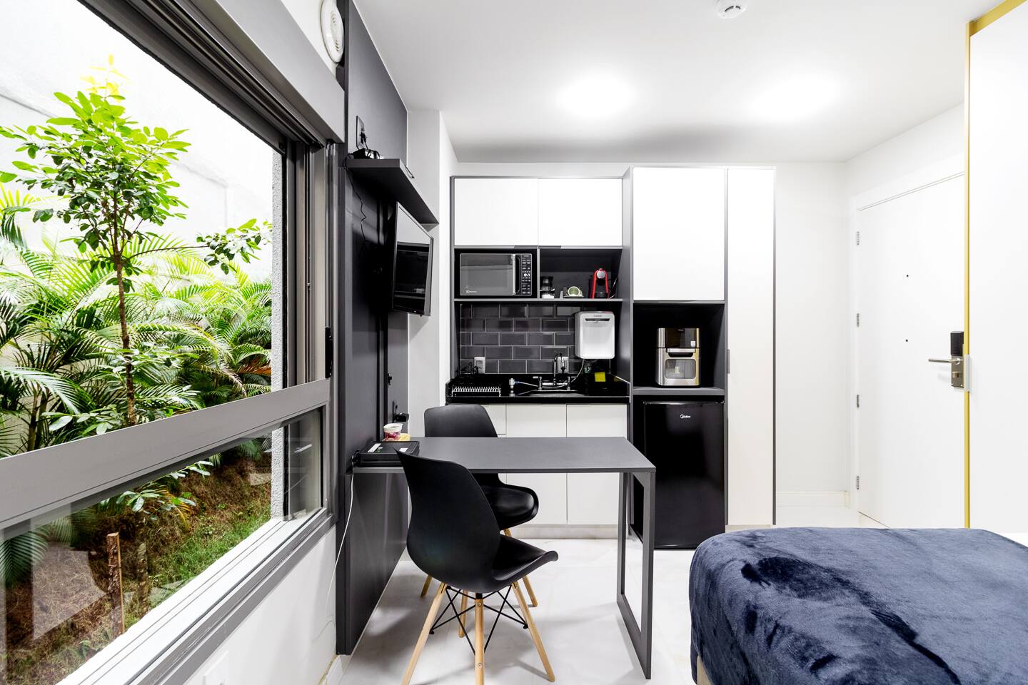 Welcome to your curated São Paulo sanctuary. This 23m² studio within the prestigious Athos Paraíso development represents the pinnacle of BSR’s "Affordable Luxury" philosophy. Located on the 1st floor, the unit is strategically positioned to face the green & quiet side of the building, offering a rare, pin-drop quiet environment—a true luxury in the heart of São Paulo. This makes it an incomparable choice for light sleepers, remote executives, or guests visiting for medical reasons at nearby world-class institutions. The interior is a masterclass in functional aesthetics. You will rest on a high-end Queen-sized bed outfitted with BSR’s signature premium linens. Designed with inclusivity in mind, the open-concept layout features a spacious, wheelchair-accessible bathroom and smooth transitions throughout, ensuring effortless mobility without sacrificing style. For the business traveler, the "zero-friction" setup includes high-speed Wi-Fi and a dedicated workspace. The kitchenette is not just a corner, but a fully equipped station stocked with coffee, spices, and high-quality utensils. Whether you are staying for two nights or two months, every detail—from the powerful AC to the ambient designer lighting—has been engineered to provide a seamless, move-in-ready experience that feels significantly more spacious and sophisticated than its footprint suggests.