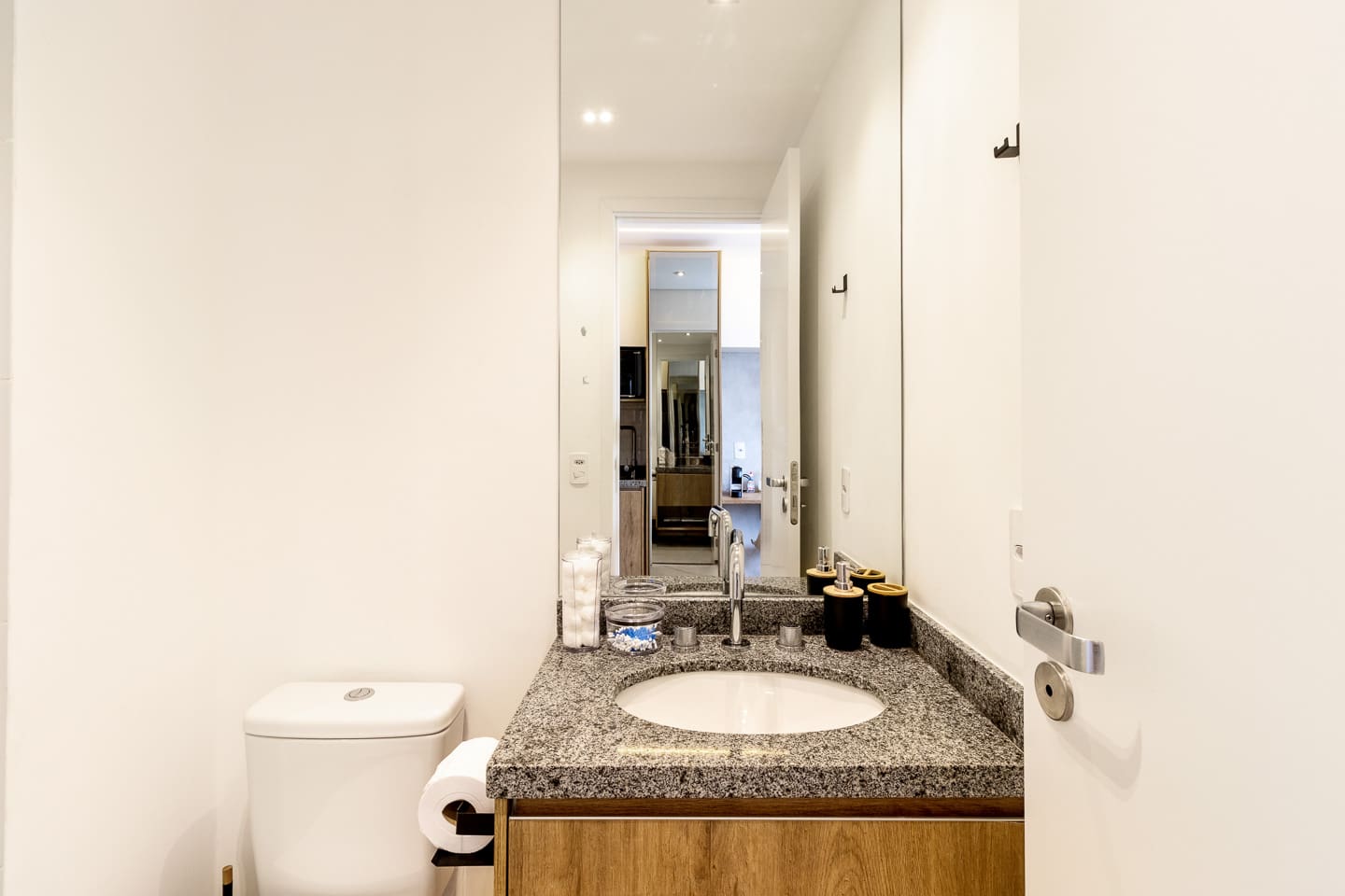 Top-notch building facilities include a 24h mini-market, laundry room, billiard lounge, and heated indoor pool. All our properties are fully equipped to make you feel at home, whether your stay is short or long. You will find all the essentials and more: coffee, sugar, salt, pepper, oil, shampoo, conditioner, soap, premium quality towels and bedding, toilet paper, and a complete cleaning kit.