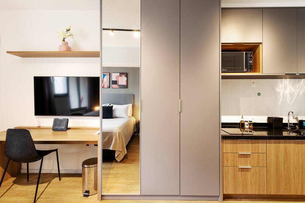 The ID PARAISO building is an extension of your apartment, offering resort-style amenities to elevate your stay: Productivity: Access the professional Coworking Lounge for meetings or a change of scenery. Wellness: De-stress in the Heated Indoor Pool (a rare find in SP!), maintain your routine in the state-of-the-art Gym, or feel safe with 24/7 Security. The Becker Studios Promise: All our properties are fully equipped to make you feel at home, whether your stay is short or long. You will find all the essentials and more: coffee, sugar, salt, pepper, oil, shampoo, conditioner, soap, premium quality towels and bedding, toilet paper, and a complete cleaning kit.