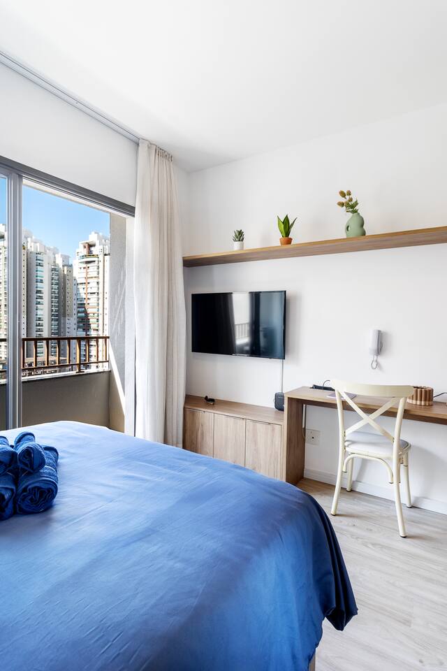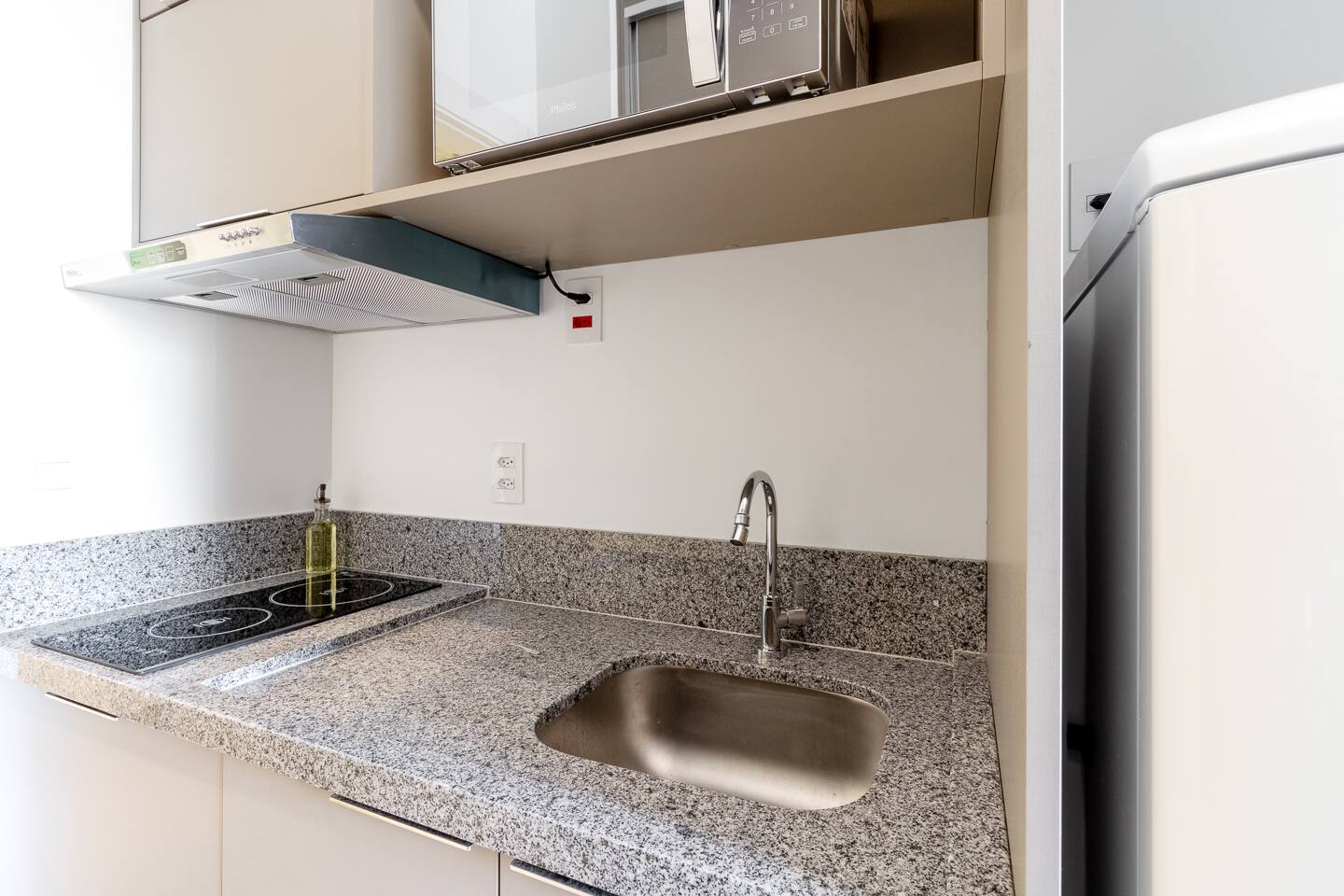 Welcome to your home in the heart of São Paulo! If you're looking for a comfortable, practical place with an unbeatable location to explore the city, our studio on the iconic Rua Augusta is for you. This studio was designed with simplicity and comfort in mind. It's the perfect retreat for two people who spend their days discovering the city and are looking for a cozy place to rest at night. Sleeping Area: Relax in a comfortable double bed, perfect for recharging your batteries. Kitchenette: While simple, the kitchen space is highly functional. It features a two-burner cooktop, a mini-fridge, pots, pans, and all the essential utensils to prepare breakfast or a light dinner. And of course, we've included wine glasses for you to toast to your São Paulo adventure. Full Bathroom: The private bathroom is equipped with our quality BSR amenities: shampoo, conditioner, and body wash, plus soft towels. Storage: An open closet with hangers allows you to organize your clothes and feel at home. PLEASE READ: IMPORTANT INFORMATION ABOUT THE BUILDING! At Becker Studios Rentals, honesty is our cornerstone. We want you to have all the information so you can decide if this is the perfect stay for you. The building is brand new (it officially opened in March 2025) and it's fantastic! However, this means that many apartments are still being finished and residents are moving in. Therefore, please consider the following before booking: DAYTIME NOISE: From Monday to Friday, during business hours (approximately 8:00 AM to 5:00 PM), it is very likely that you will hear construction-related noise. If you plan to be out exploring the city during the day, this should not affect you. PROTECTED COMMON AREAS: To protect the new facilities during the move-in period, you will notice that the elevators and some hallway floors are covered with protective materials. We are offering a special introductory rate to account for these details. This is a unique opportunity to stay in a premium location for an incredible price while the building fully comes to life! If you're the type of traveler who spends the day exploring and is looking for a well-located, comfortable base to rest at night, then this studio is the perfect fit for you! We look forward to welcoming you with the BSR standard of hospitality!