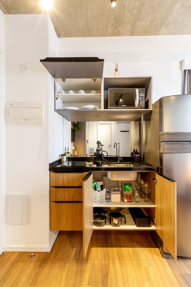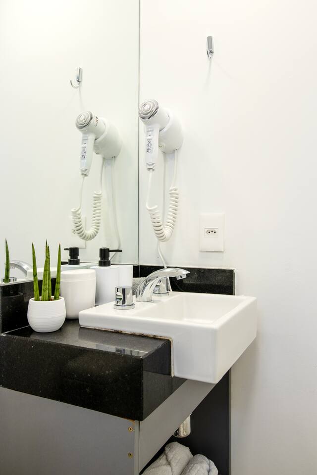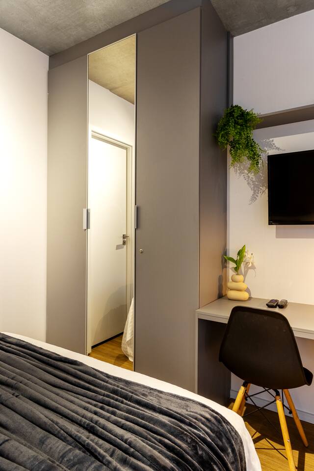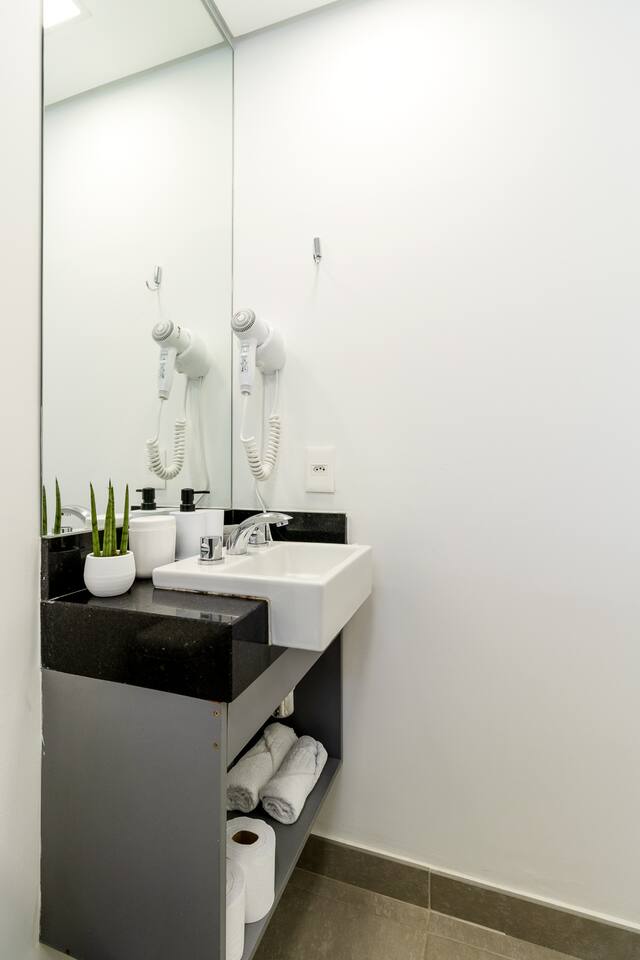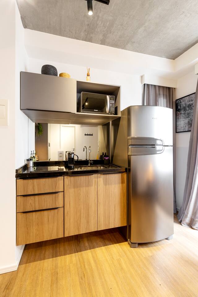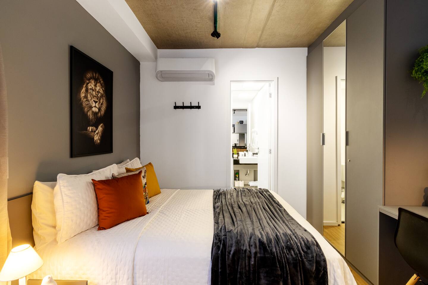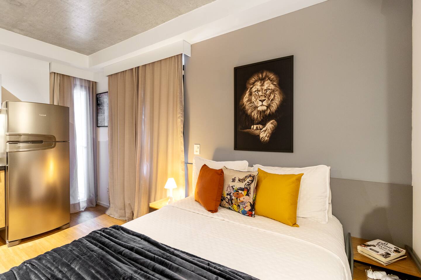 Welcome to your private headquarters in São Paulo. Though compact (25m²), this studio is intelligently designed to maximize comfort and functionality. Rest: Unwind on a high-quality Queen-size bed fitted with premium linens, ensuring a perfect night's sleep after a busy day. Work: A dedicated workspace and lightning-fast internet make this unit ideal for remote work or business calls. Living: The studio features a modern kitchenette, air conditioning for those warm tropical days, and a Smart TV for your evening entertainment.