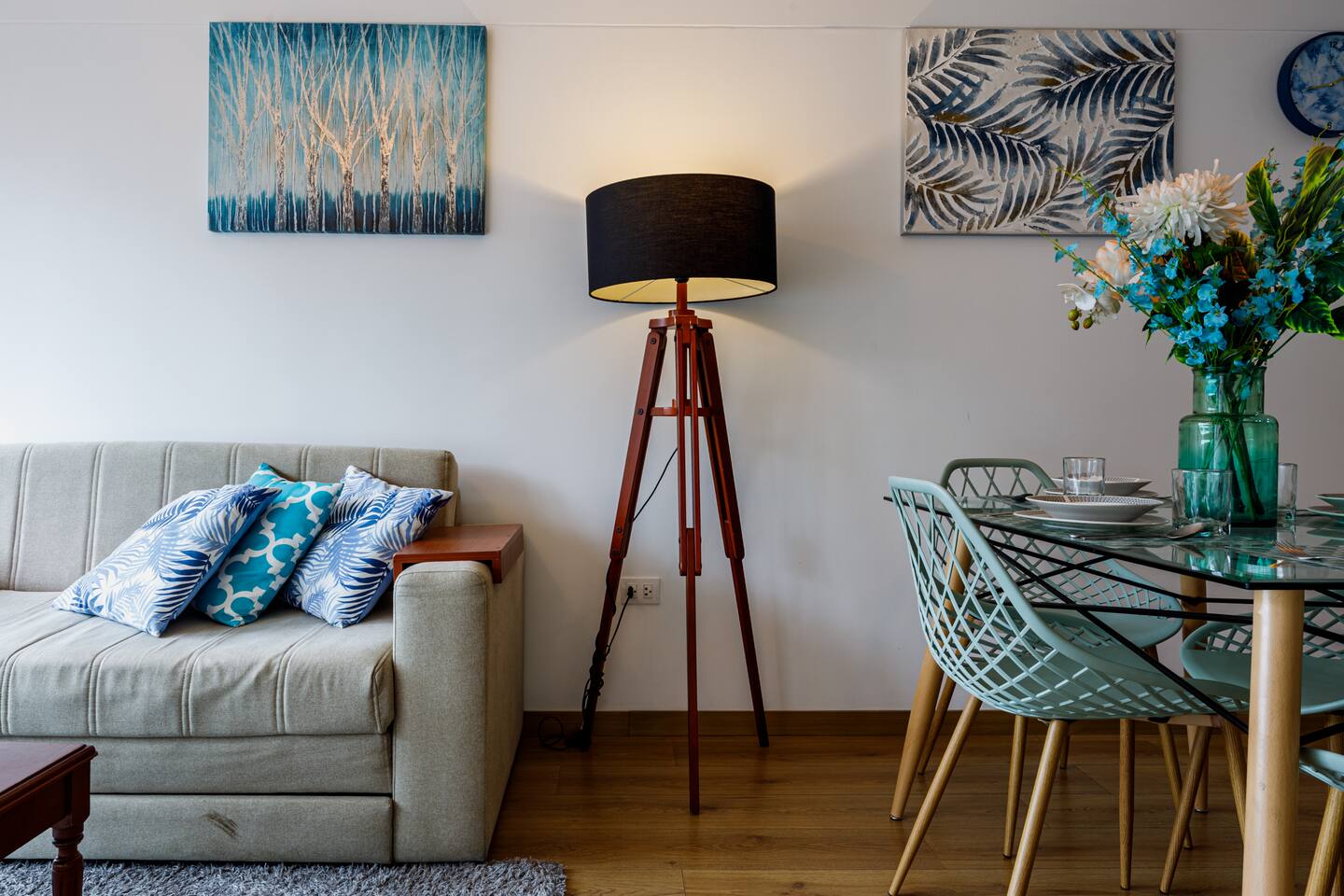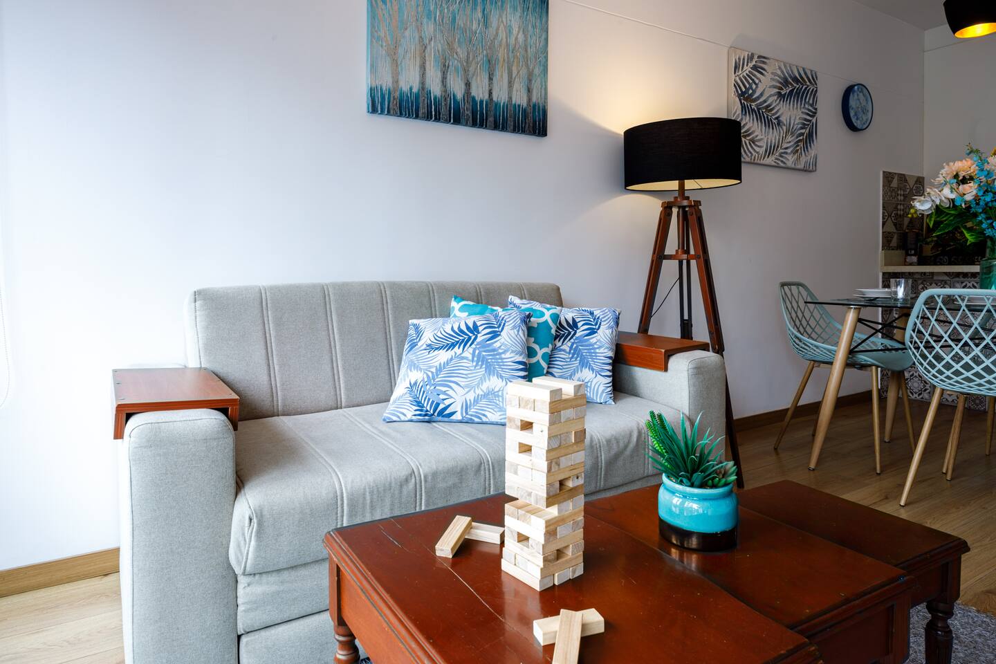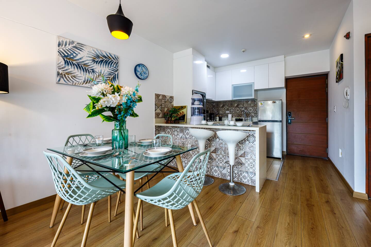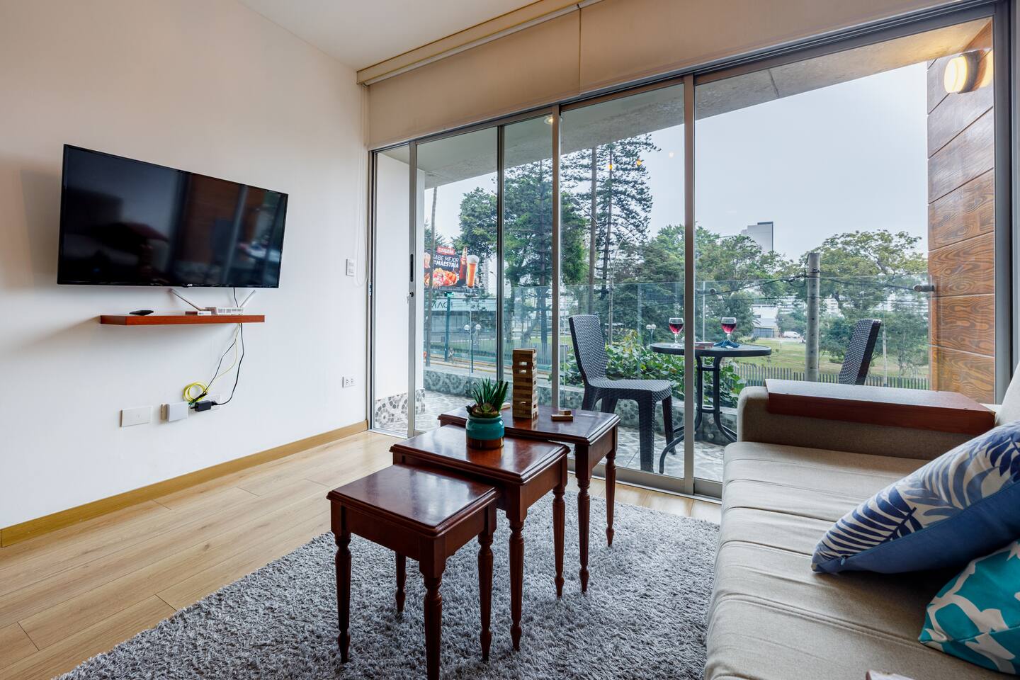 Moderno flat en Barranco en edificio exclusivo con piscina y gym. Vive la mejor experiencia en el distrito más vibrante de Lima, con vista al MAC desde tu balcón. Este espacio para 3 (cama Queen + sofá cama) está totalmente equipado para tu confort, incluyendo café y artículos de aseo premium. A solo pasos de las galerías, bares y restaurantes que hacen famoso a Barranco. ¡El hogar perfecto para tu romántica aventura!