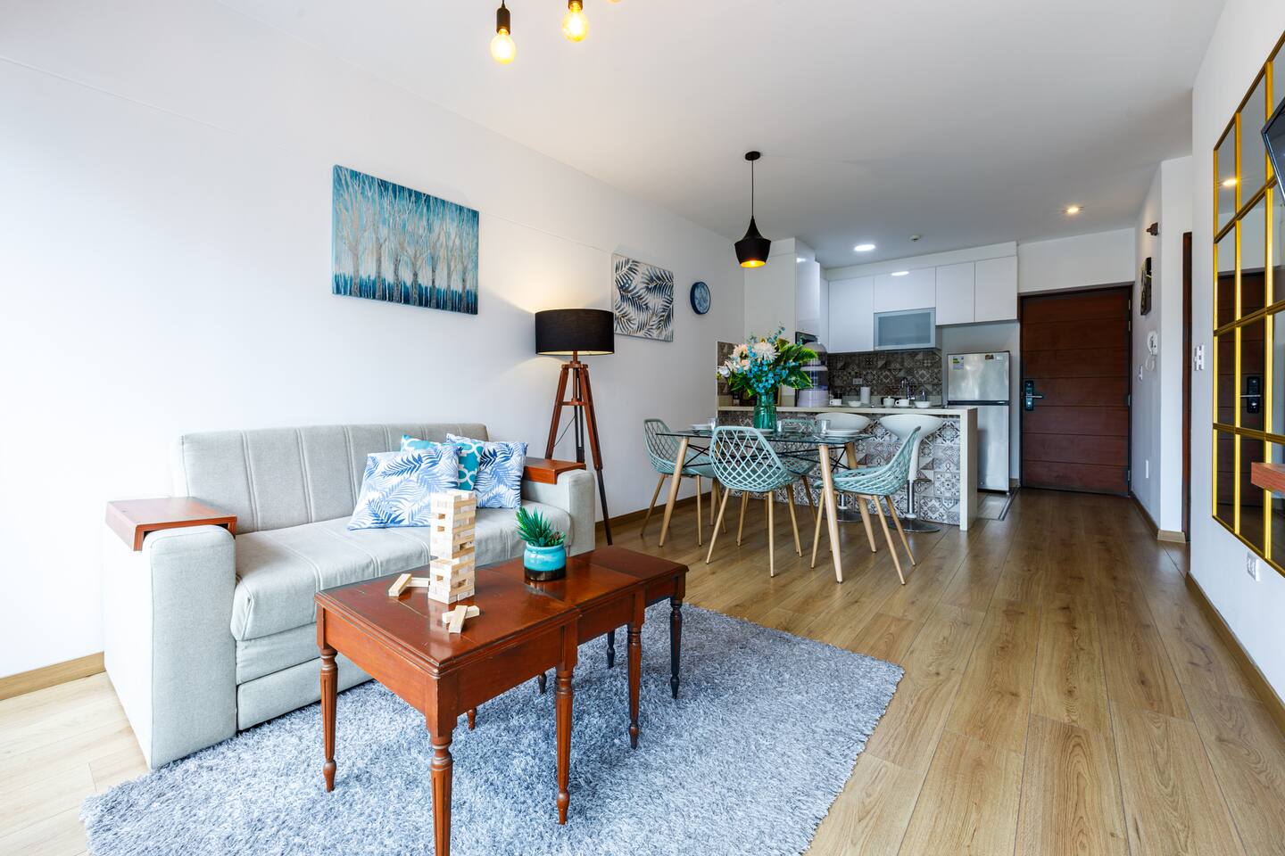 Bienvenido a tu refugio romántico en el corazón de Barranco. Este no es solo un apartamento; es un espacio meticulosamente diseñado para dos, donde cada detalle ha sido pensado para inspirar conexión, confort y momentos inolvidables, combinando la calidez de un hogar con el lujo de un hotel boutique. Al entrar, te recibe una sala acogedora y llena de estilo, donde la luz natural baña cada rincón. El espacio fluye hacia una cocina de diseño, abierta y completamente equipada. Aquí encontrarás todo lo necesario para preparar desde un desayuno energizante con café peruano hasta una cena especial para disfrutar en la intimidad. El balcón se convierte en su rincón privado para sentir la energía de Barranco. La mesita es el escenario perfecto para descorchar una botella de vino al atardecer, compartir una partida de juegos de mesa o simplemente conversar bajo las luces del bohemio distrito. El dormitorio principal es un verdadero santuario de descanso. Aquí, el lujo se siente en cada fibra. La cama Queen está vestida con sábanas, fundas y un edredón de puro y renombrado algodón peruano, una caricia para la piel que garantiza un descanso superior. Las toallas, igualmente de este material excepcional, elevan tu rutina diaria a una experiencia sensorial. Más que un lugar donde alojarse, este es un espacio BSR creado para celebrar. Cada elemento, desde el arte en las paredes hasta la suavidad de las sábanas, está dispuesto para que su escapada a Lima sea simplemente perfecta.
