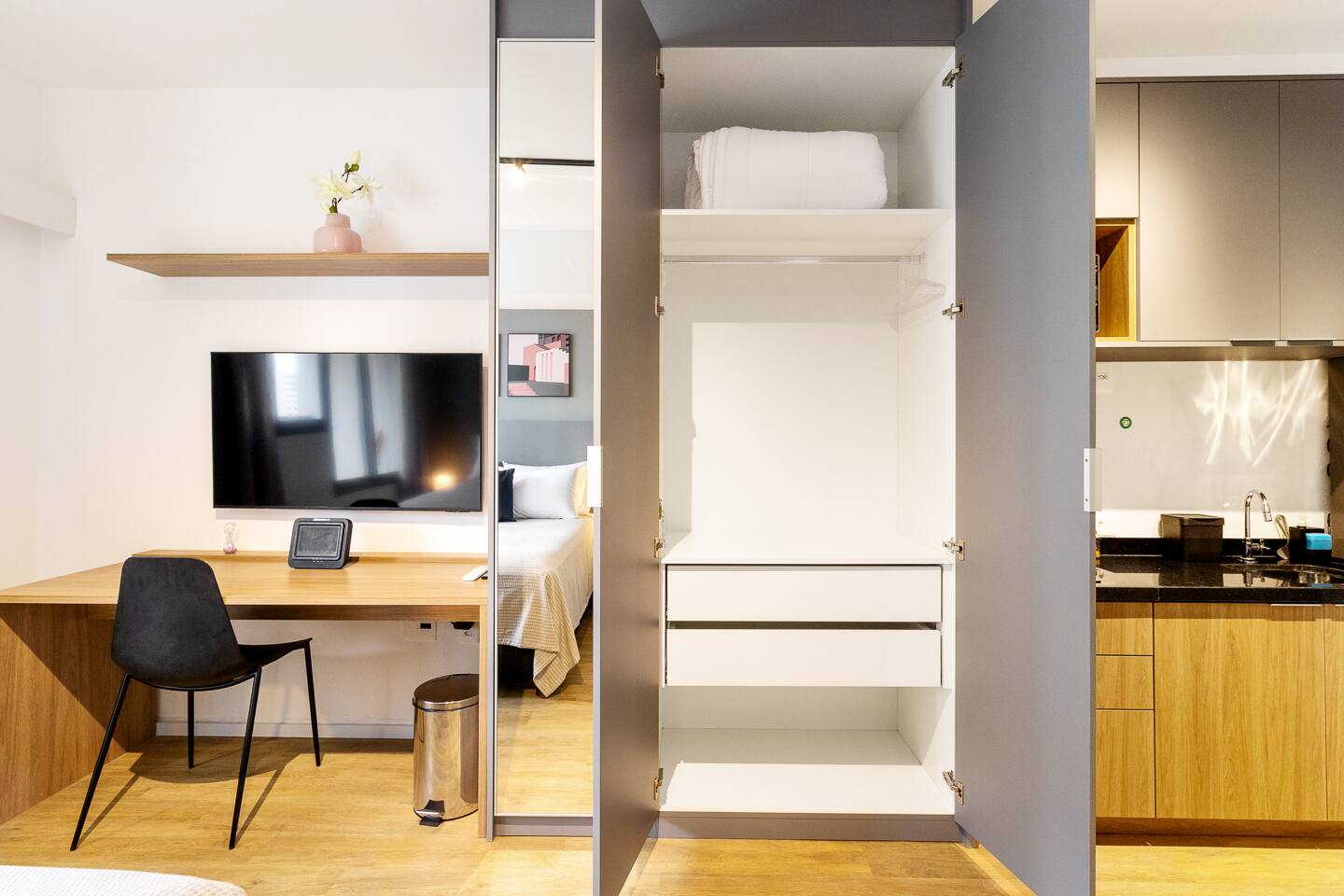 The ID PARAISO building is an extension of your apartment, offering resort-style amenities to elevate your stay: Productivity: Access the professional Coworking Lounge for meetings or a change of scenery. Wellness: De-stress in the Heated Indoor Pool (a rare find in SP!), maintain your routine in the state-of-the-art Gym, or feel safe with 24/7 Security. The Becker Studios Promise: All our properties are fully equipped to make you feel at home, whether your stay is short or long. You will find all the essentials and more: coffee, sugar, salt, pepper, oil, shampoo, conditioner, soap, premium quality towels and bedding, toilet paper, and a complete cleaning kit.