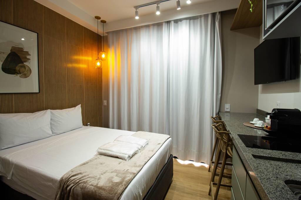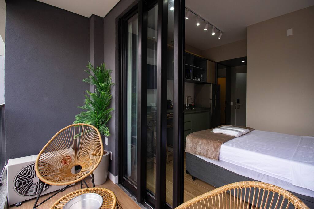 Maximize your productivity in São Paulo at this executive studio. Located in a prestigious building, this property is specifically curated for the modern student or professional. We offer a seamless, high-tech environment featuring ultra-fast 500mbps fiber Wi-Fi and a quiet, focused atmosphere. Between meetings, step out onto the balcony to clear your head with views of the city. With 24/7 security and a prime location near the financial hubs, your business trip has never been this efficient.