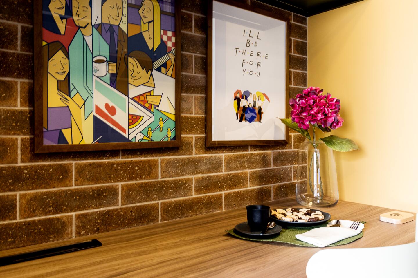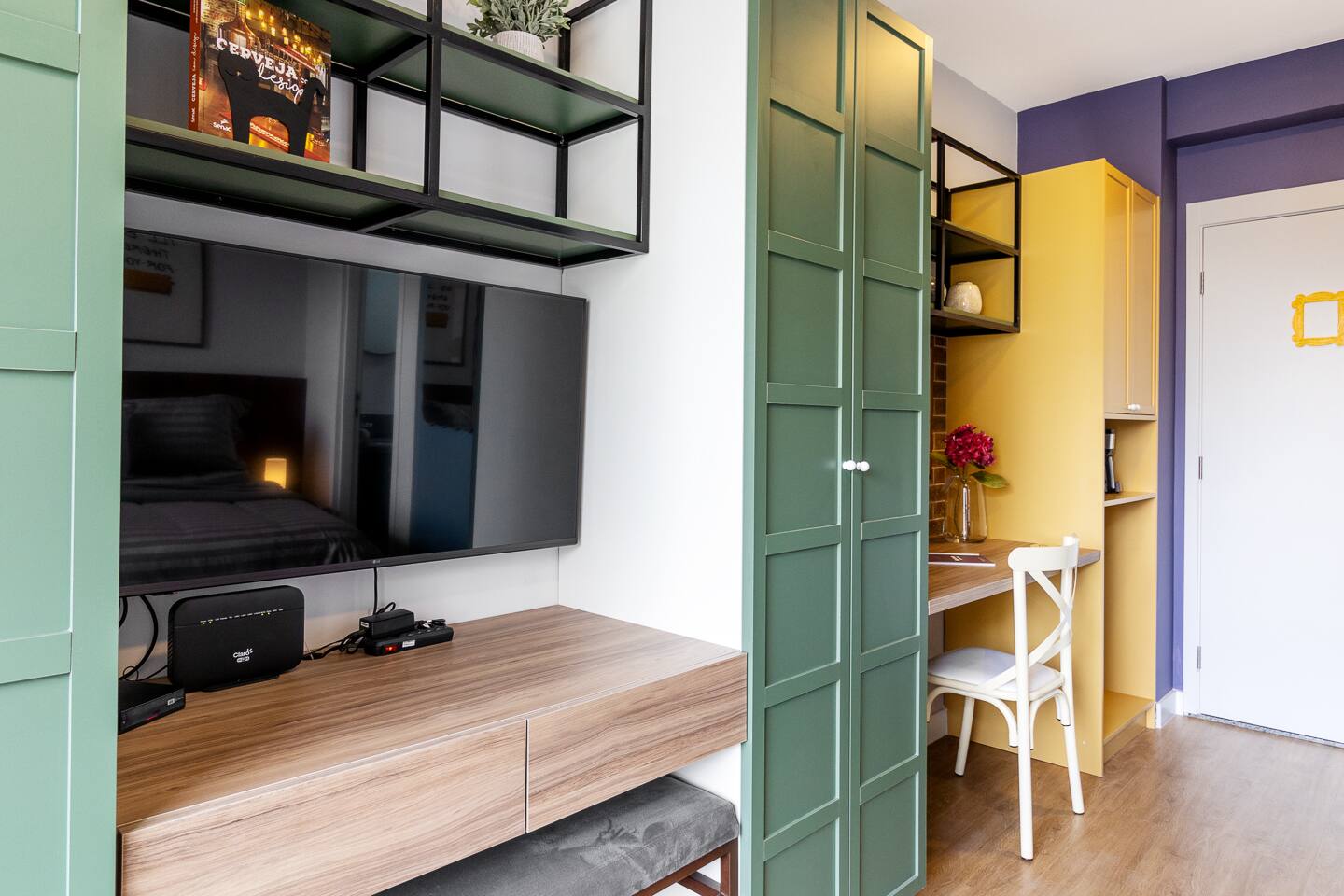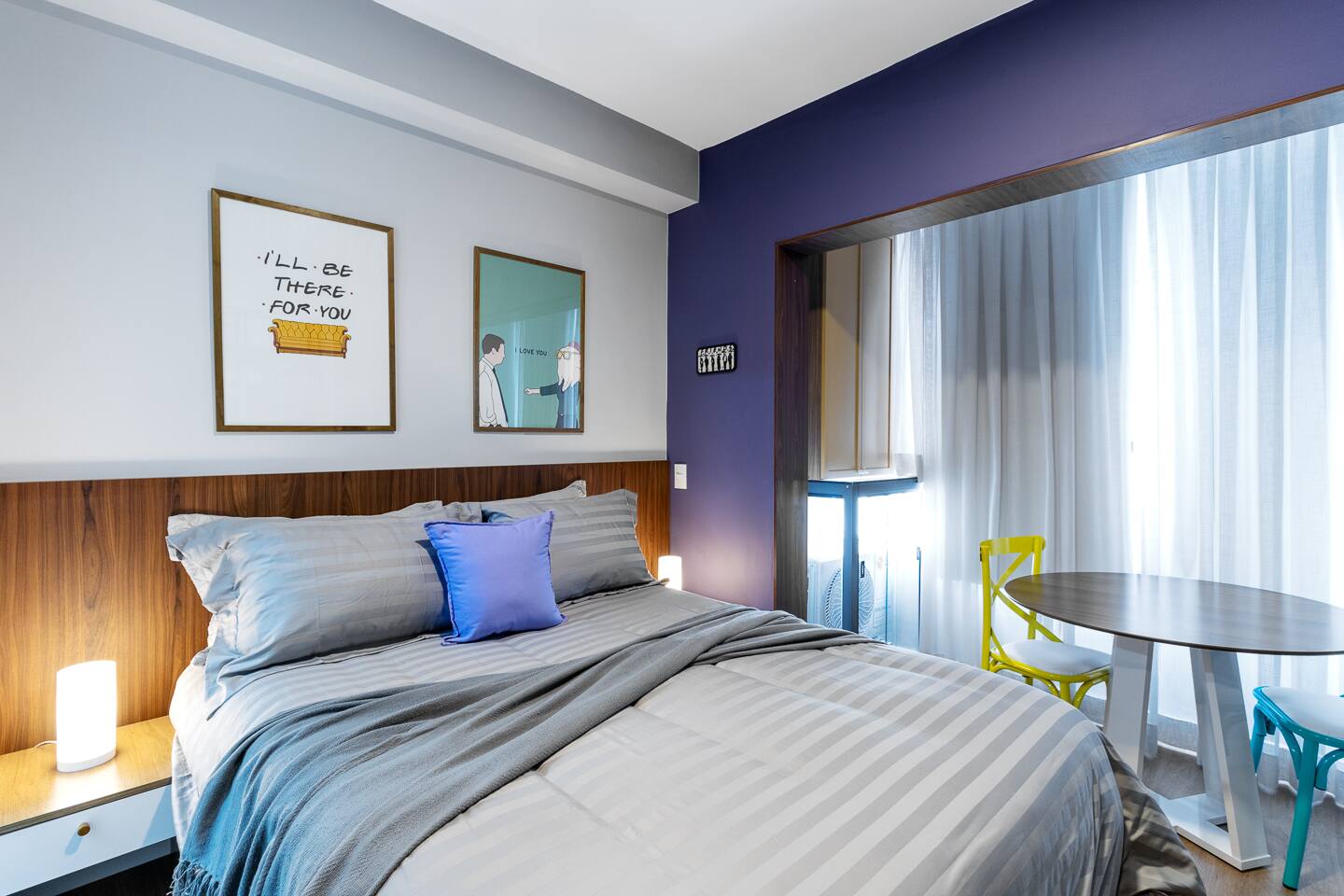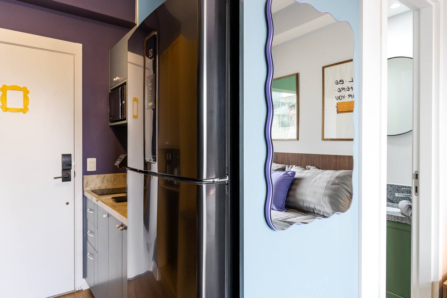 The One Where You Stay in São Paulo! Entra por la icónica puerta con marco amarillo a nuestro studio en el corazón de la vibrante Rua Augusta. Revive FRIENDS con detalles que te harán sonreír: el cuadro de Monica, frases célebres y las coloridas sillas. Disfruta de un descanso soñado en la cama premium, vestida con sábanas de algodón premium. Cuidamos cada detalle para un confort de lujo y la mejor ubicación para que tu viaje sea absolutamente legendario. ¿Podría SER más perfecto?