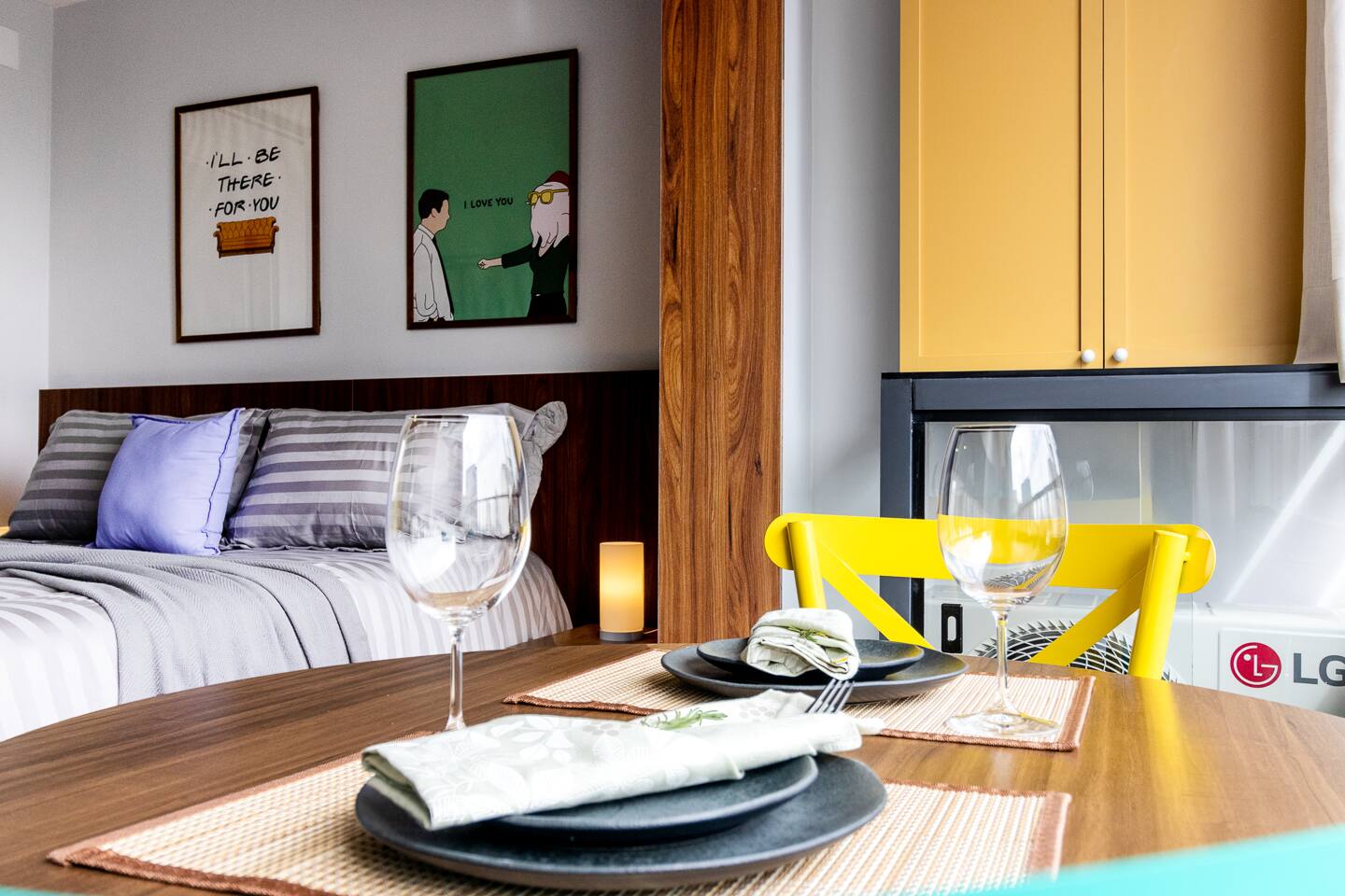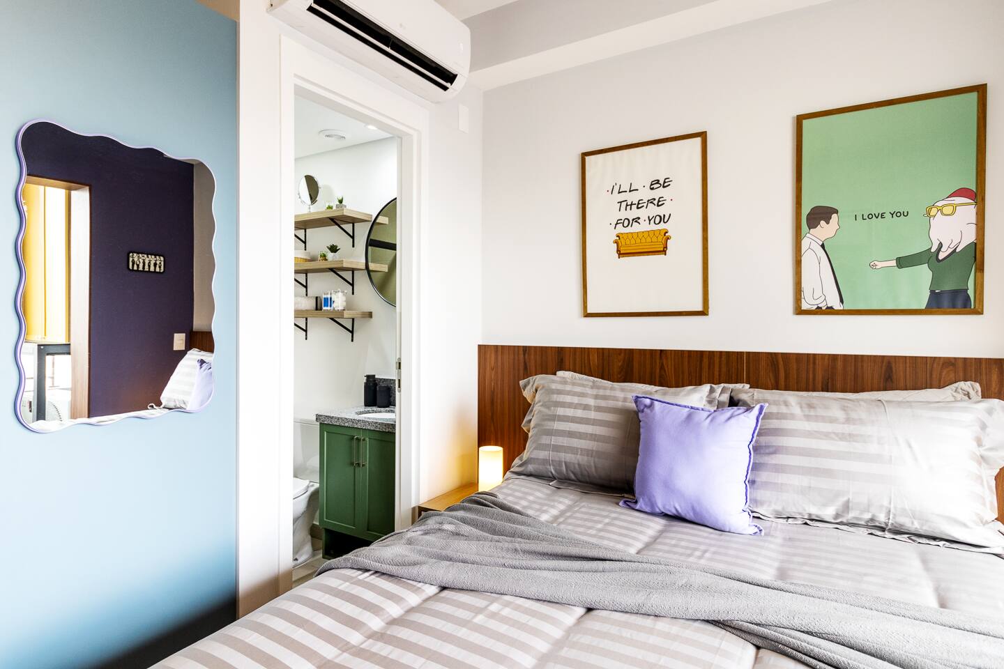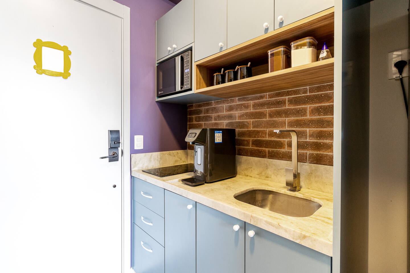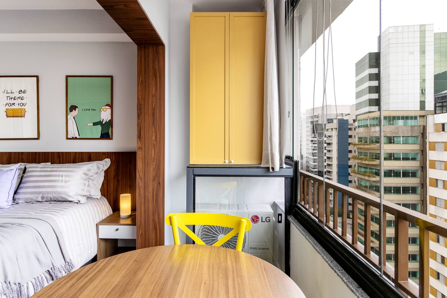 The One Where You Stay in São Paulo! Entra por la icónica puerta con marco amarillo a nuestro studio en el corazón de la vibrante Rua Augusta. Revive FRIENDS con detalles que te harán sonreír: el cuadro de Monica, frases célebres y las coloridas sillas. Disfruta de un descanso soñado en la cama premium, vestida con sábanas de algodón premium. Cuidamos cada detalle para un confort de lujo y la mejor ubicación para que tu viaje sea absolutamente legendario. ¿Podría SER más perfecto?