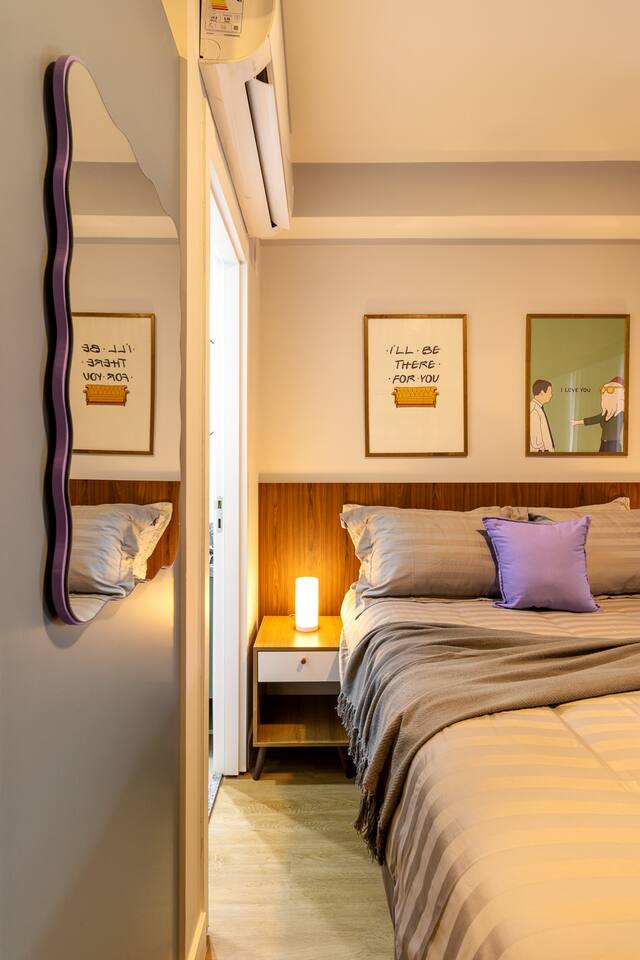 Hemos diseñado cada rincón para transportarte a la serie que amas, pero con un toque de lujo y confort que ni Monica Geller podría superar. La Experiencia FRIENDS: Sonríe con el cuadro de Monica y el pavo, siéntate en las coloridas sillas que evocan la cocina más famosa de la TV y reta a tus acompañantes con nuestros juegos de mesa temáticos. Descanso Premium: Tu comodidad es nuestra máxima prioridad. Te espera una cama de 2pz con sábanas de algodón de primera calidad y un menú de 4 almohadas de diferentes modelos para que elijas tu favorita y garantices un descanso perfecto. Totalmente Equipado: Siéntete libre de preparar un festín en nuestra cocina, equipada con todo lo necesario, y brinda con las copas que hemos dejado para ti. Encontrarás también café, productos de limpieza y un kit de bienvenida en el baño con shampoo, acondicionador y jabón. Entretenimiento sin Fin: Después de un día explorando la ciudad, relájate frente a nuestra Smart TV con Inteligencia Artificial, que incluye Globo Play, Netflix y HBO Max, además de más de 50 canales de televisión.