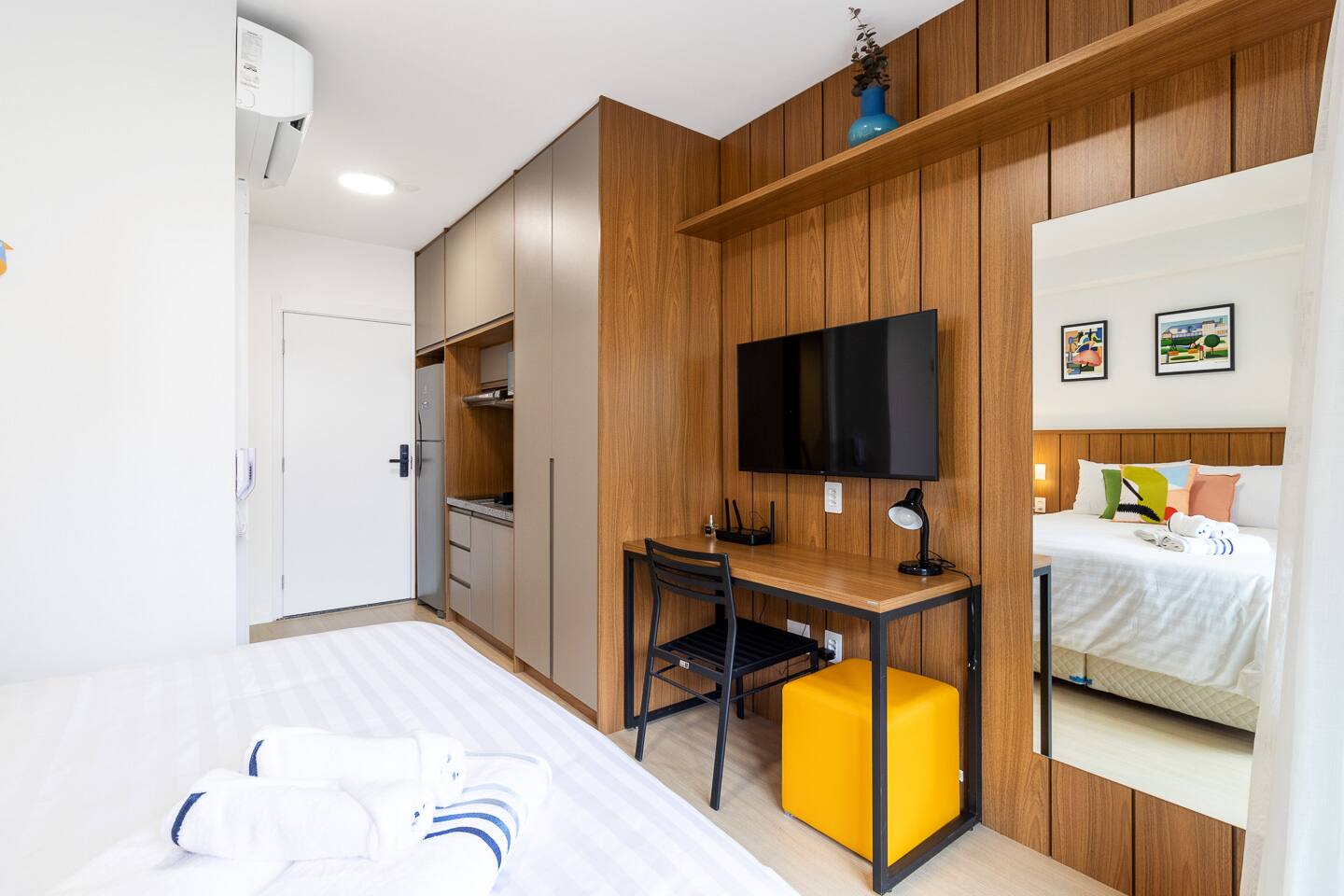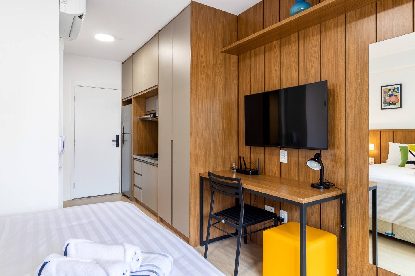 All our properties are fully equipped to make you feel at home, whether your stay is short or long. You will find all the essentials and more: coffee, sugar, salt, pepper, oil, shampoo, conditioner, soap, premium quality towels and bed linen, toilet paper, and a complete cleaning kit. Don't settle for less. Experience the city like a local with premium comfort. Secure your reservation now. Enjoy the quality and peace of mind that only Becker Studios Rentals can offer.